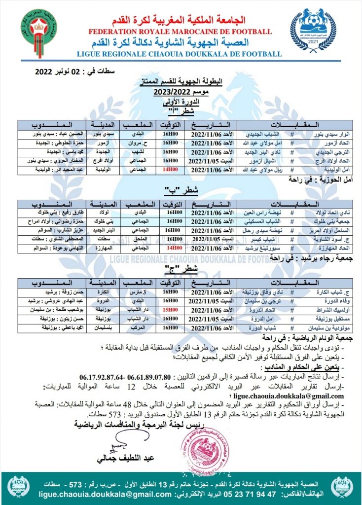 برنامج الدورة الأولى من بطولة القسم الممتاز موسم 2022-2023