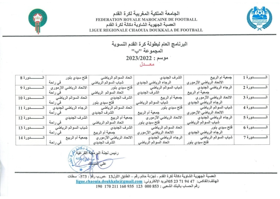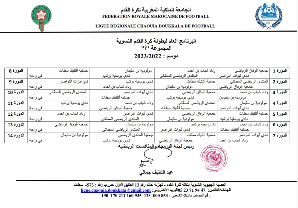 البرنامج العام لبطولة كرة القدم النسوية لعصبة الشاوية دكالة
