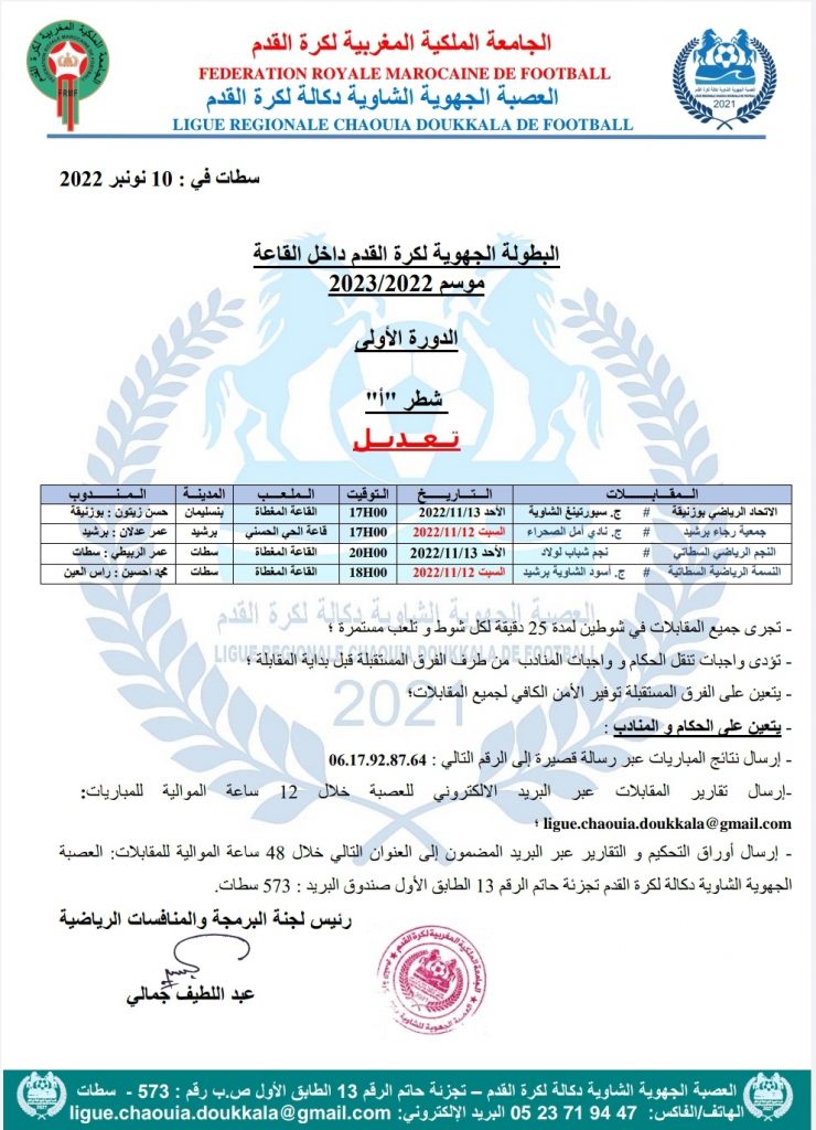 الرئيسية/رياضات متنوعة/1- كرة القدم داخل القاعة/تعديل الدورة الاولى من بطولة كرة القدم داخل القاعة-فرع الشاوية 1- كرة القدم داخل القاعةرياضات متنوعة تعديل الدورة الاولى من بطولة كرة القدم داخل القاعة-فرع الشاوية نوفمبر 10, 2022 150 فيسبوك تويتر واتساب تيلقرام مشاركة عبر البريد طباعة نوفمبر 10, 2022 150 فيسبوك تويتر واتساب تيلقرام مشاركة عبر البريد طباعة اظهر المزيد شاركها فيسبوك تويتر واتساب تيلقرام مشاركة عبر البريد طباعة