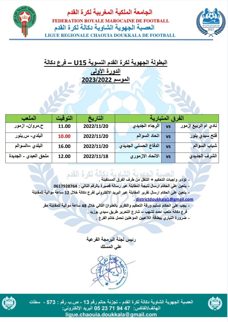 الرئيسية/مسابقات/5- كرة القدم النسوية/الدورة الأولى من البطولة الجهوية لكرة القدم النسوية فئة الصغيرات – فرع دكالة 5- كرة القدم النسوية الدورة الأولى من البطولة الجهوية لكرة القدم النسوية فئة الصغيرات – فرع دكالة نوفمبر 17, 2022 162 فيسبوك تويتر واتساب تيلقرام مشاركة عبر البريد طباعة نوفمبر 17, 2022 162 فيسبوك تويتر واتساب تيلقرام مشاركة عبر البريد طباعة اظهر المزيد شاركها فيسبوك تويتر واتساب تيلقرام مشاركة عبر البريد طباعة