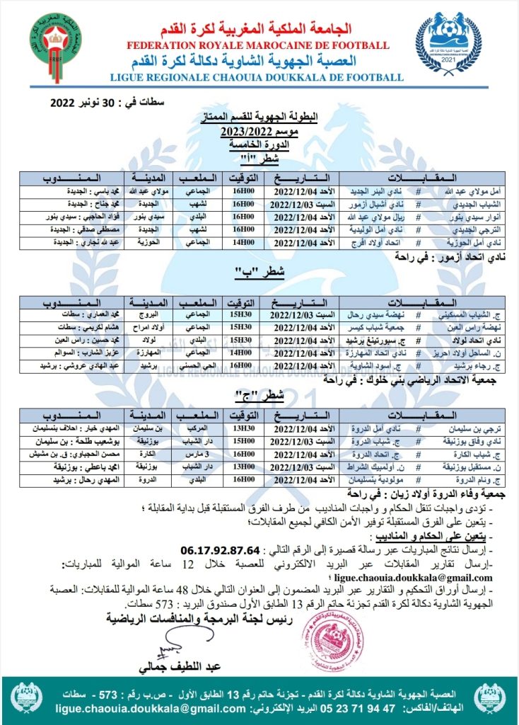 برنامج الدورة الخامسة من البطولة الجهوية للقسم الممتاز