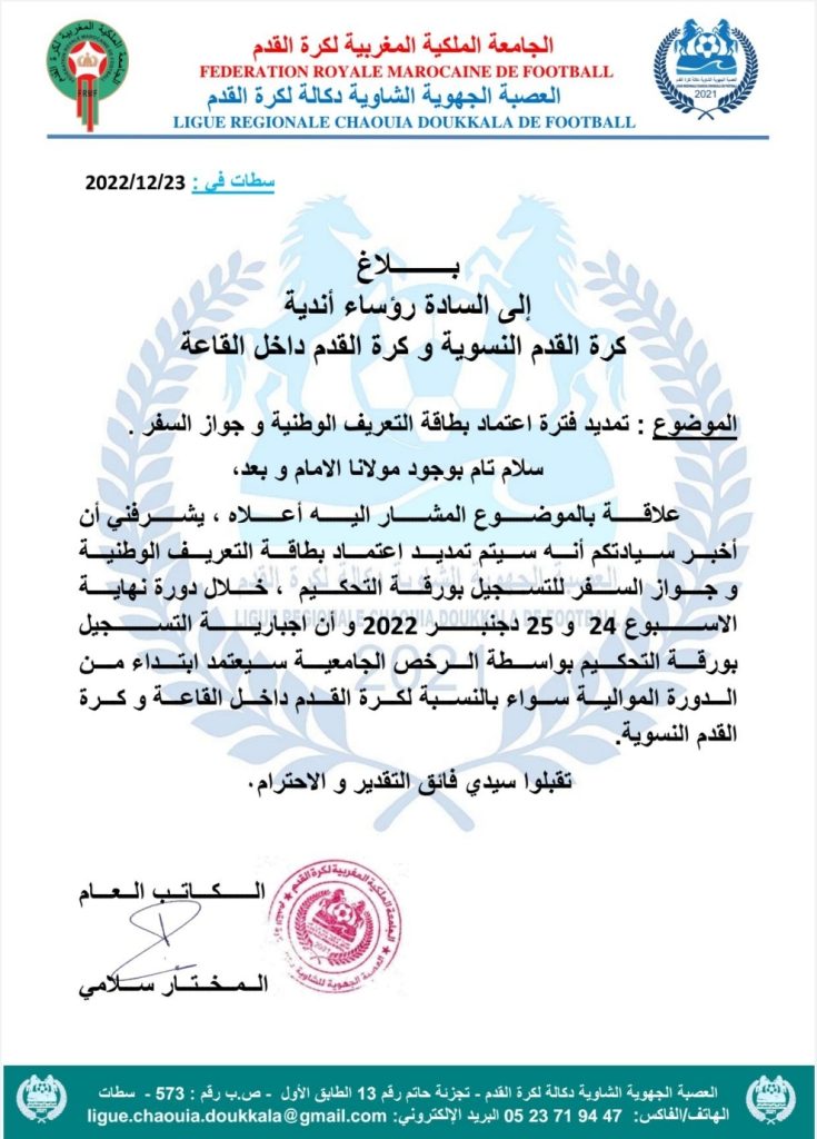 بلاغ حول تمديد آجال استعمال بطائق التعريف الوطنية و جوازات السفر
