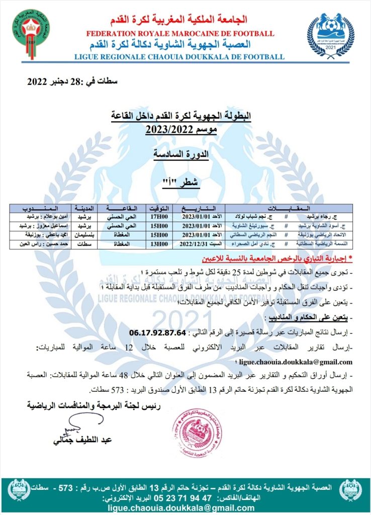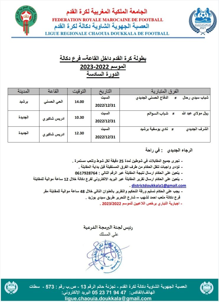 الرئيسية/رياضات متنوعة/1- كرة القدم داخل القاعة/برنامج الدورة السادسة من البطولة الجهوية لكرة القدم داخل القاعة 1- كرة القدم داخل القاعة برنامج الدورة السادسة من البطولة الجهوية لكرة القدم داخل القاعة ديسمبر 28, 2022 142 فيسبوك تويتر واتساب تيلقرام مشاركة عبر البريد طباعة فرع الشاوية فرع دكالة ديسمبر 28, 2022 142 فيسبوك تويتر واتساب تيلقرام مشاركة عبر البريد طباعة اظهر المزيد شاركها فيسبوك تويتر واتساب تيلقرام مشاركة عبر البريد طباعة