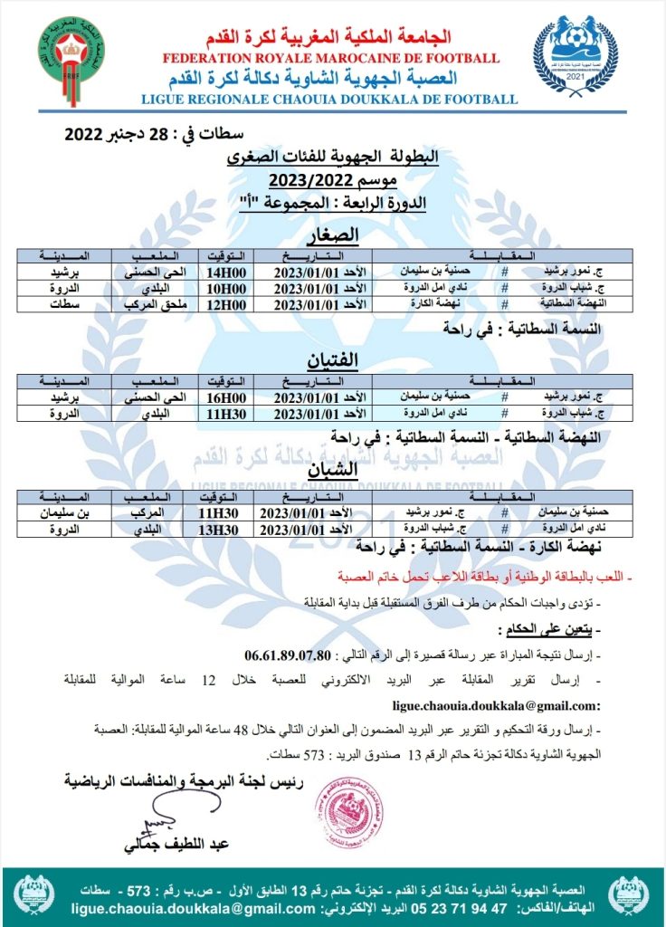 الرئيسية/مسابقات/2- بطولات الفئات العمرية/برنامج الدورة الرابعة من البطولة الجهوية للفئات الصغرى 2- بطولات الفئات العمرية برنامج الدورة الرابعة من البطولة الجهوية للفئات الصغرى ديسمبر 28, 2022 187 فيسبوك تويتر واتساب تيلقرام مشاركة عبر البريد طباعة ديسمبر 28, 2022 187 فيسبوك تويتر واتساب تيلقرام مشاركة عبر البريد طباعة اظهر المزيد شاركها فيسبوك تويتر واتساب تيلقرام مشاركة عبر البريد طباعة