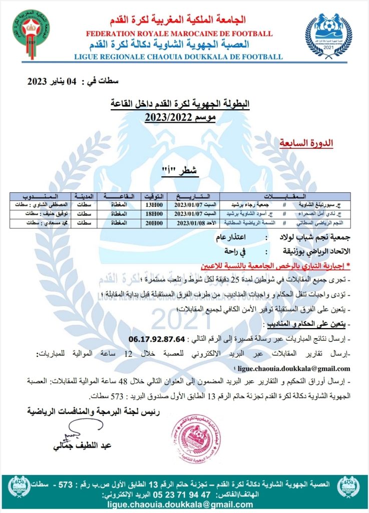 برنامج الدورة السابعة من البطولة الجهوية لكرة القدم داخل القاعة