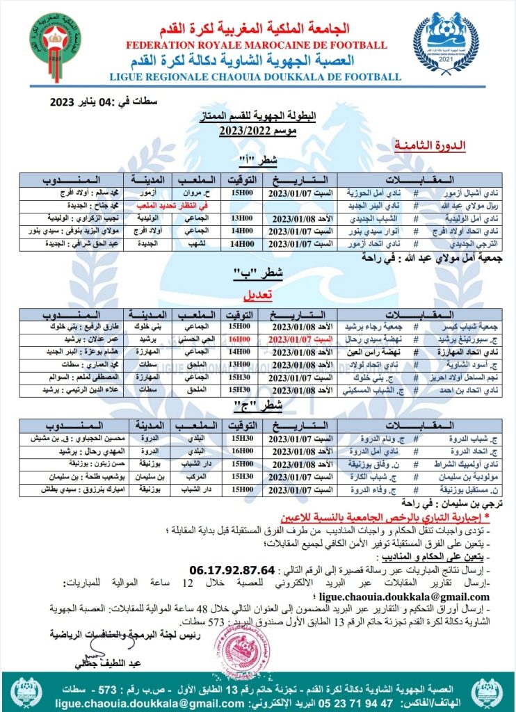 الرئيسية/مسابقات/1- بطولات العصبة الجهوية/تعديل برنامج الدورة الثامنة من البطولة الجهوية القسم الممتاز 1- بطولات العصبة الجهوية تعديل برنامج الدورة الثامنة من البطولة الجهوية القسم الممتاز يناير 5, 2023 173 فيسبوك تويتر واتساب تيلقرام مشاركة عبر البريد طباعة يناير 5, 2023 173 فيسبوك تويتر واتساب تيلقرام مشاركة عبر البريد طباعة اظهر المزيد شاركها فيسبوك تويتر واتساب تيلقرام مشاركة عبر البريد طباعة