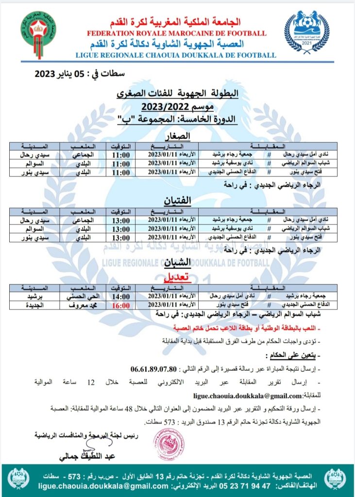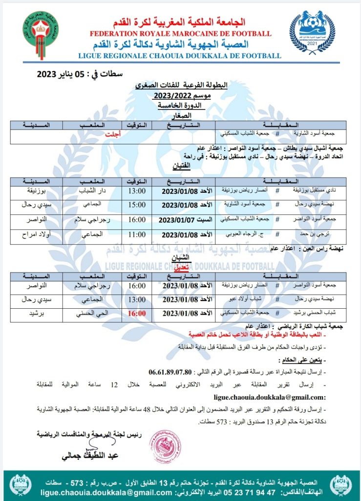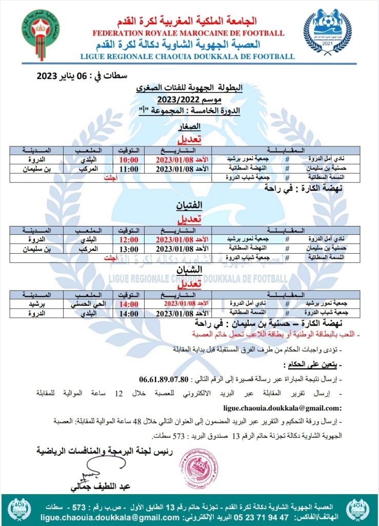 تعديل برنامج الدورة الخامسة من البطولة الجهوية للفئات الصغرى