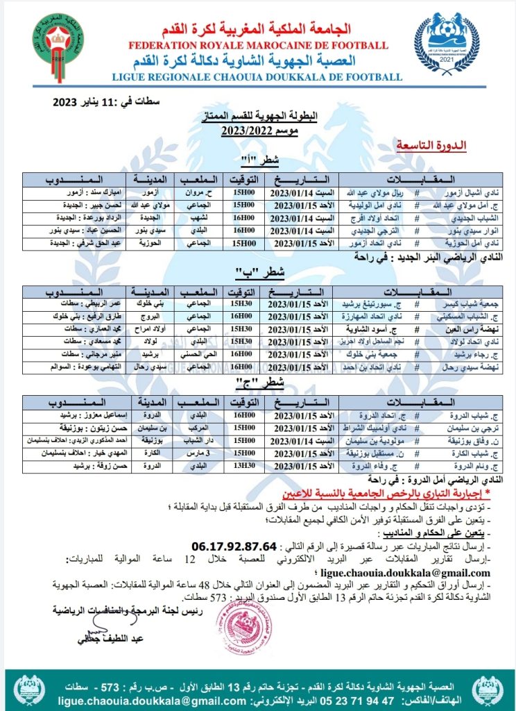 برنامج الدورة التاسعة من البطولة الجهوية القسم الممتاز