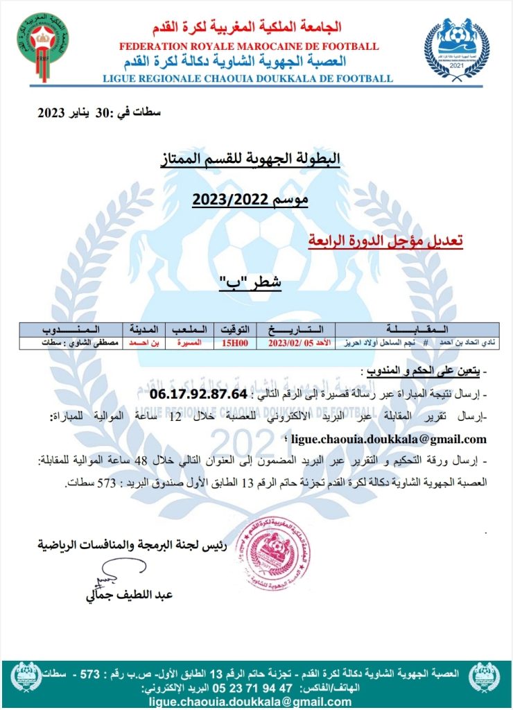 الرئيسية/مسابقات/1- بطولات العصبة الجهوية/تعديل مؤجل الدورة الرابعة من البطولة الجهوية القسم الممتاز 1- بطولات العصبة الجهوية تعديل مؤجل الدورة الرابعة من البطولة الجهوية القسم الممتاز يناير 30, 2023 165 فيسبوك تويتر واتساب تيلقرام مشاركة عبر البريد طباعة يناير 30, 2023 165 فيسبوك تويتر واتساب تيلقرام مشاركة عبر البريد طباعة اظهر المزيد شاركها فيسبوك تويتر واتساب تيلقرام مشاركة عبر البريد طباعة