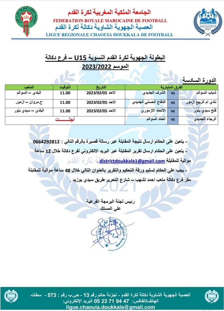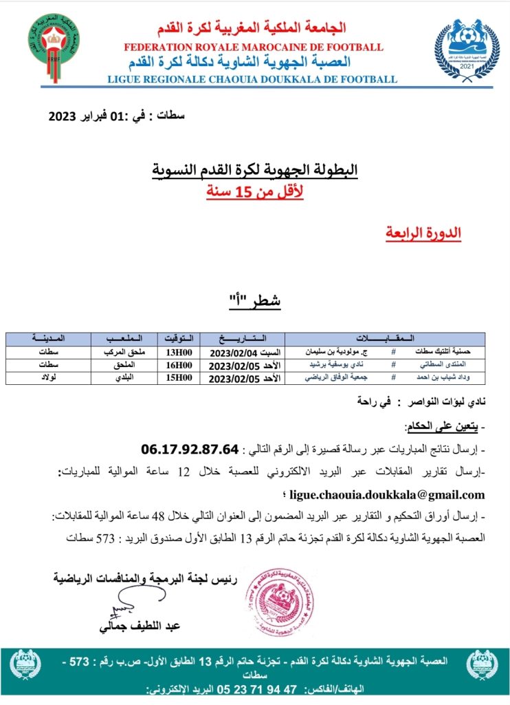 برنامج البطولة الجهوية لكرة القدم النسوية لأقل من 15 سنة