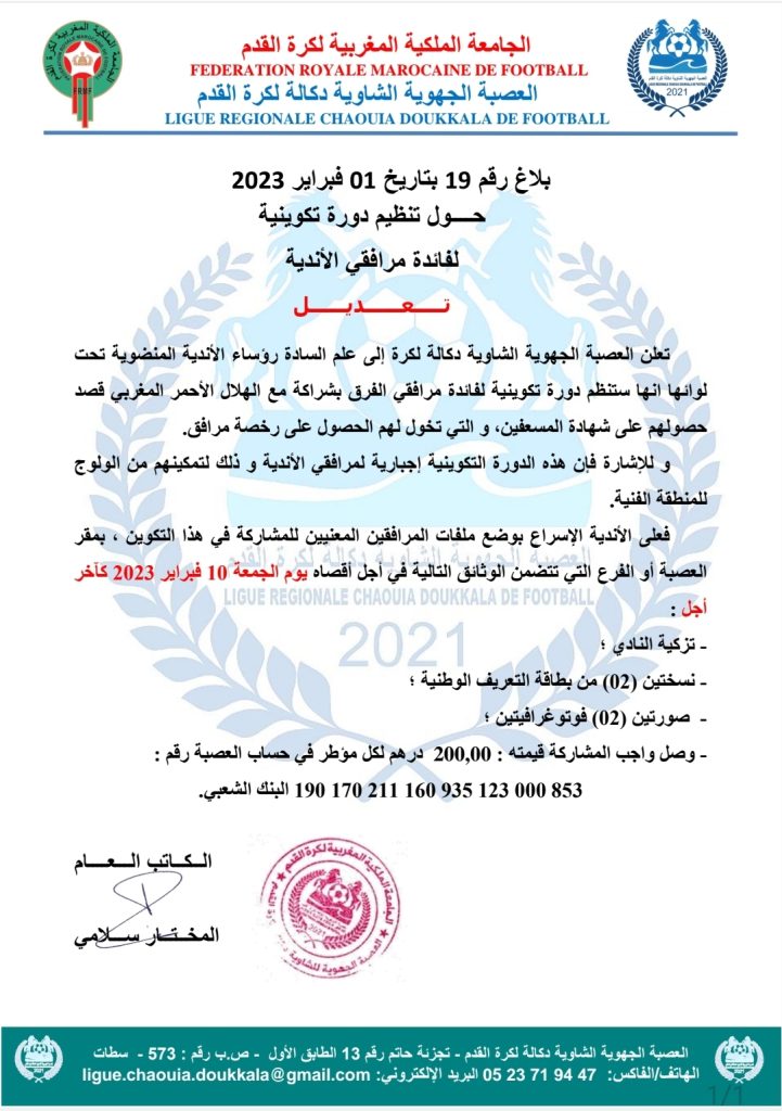 الرئيسية/بلاغات و دوريات و محاضر/بلاغات العصبة/تعديل بلاغ رقم 19 بتاريخ 01 فبراير 2023 حول تنظيم دورة تكوينية لفائدة مرافقي الأندية بلاغات العصبة تعديل بلاغ رقم 19 بتاريخ 01 فبراير 2023 حول تنظيم دورة تكوينية لفائدة مرافقي الأندية فبراير 2, 2023 150 فيسبوك تويتر واتساب تيلقرام مشاركة عبر البريد طباعة فبراير 2, 2023 150 فيسبوك تويتر واتساب تيلقرام مشاركة عبر البريد طباعة اظهر المزيد شاركها فيسبوك تويتر واتساب تيلقرام مشاركة عبر البريد طباعة