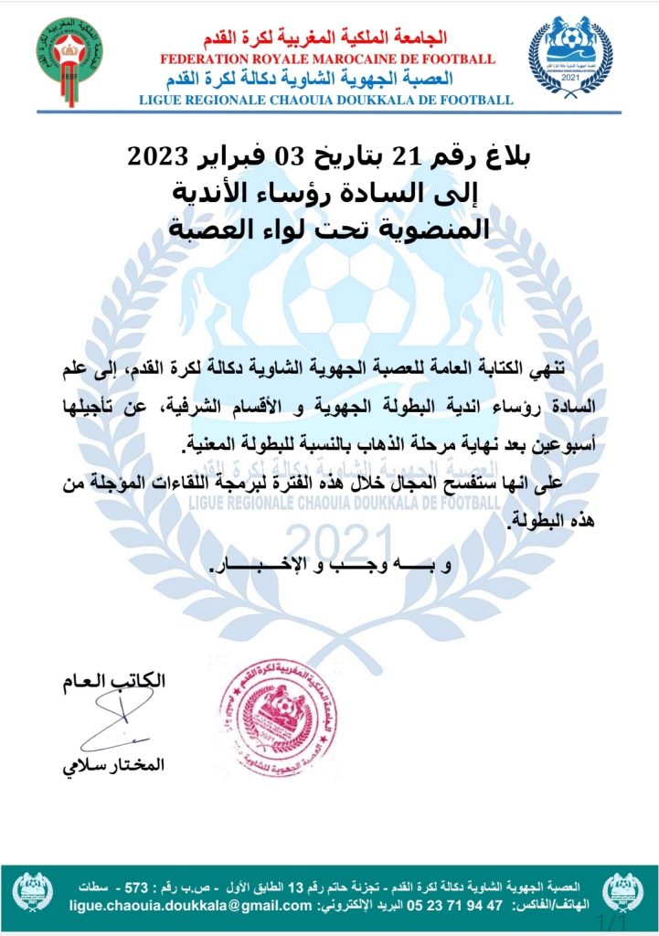 بلاغ رقم 21 بتاريخ 03 فبراير 2023