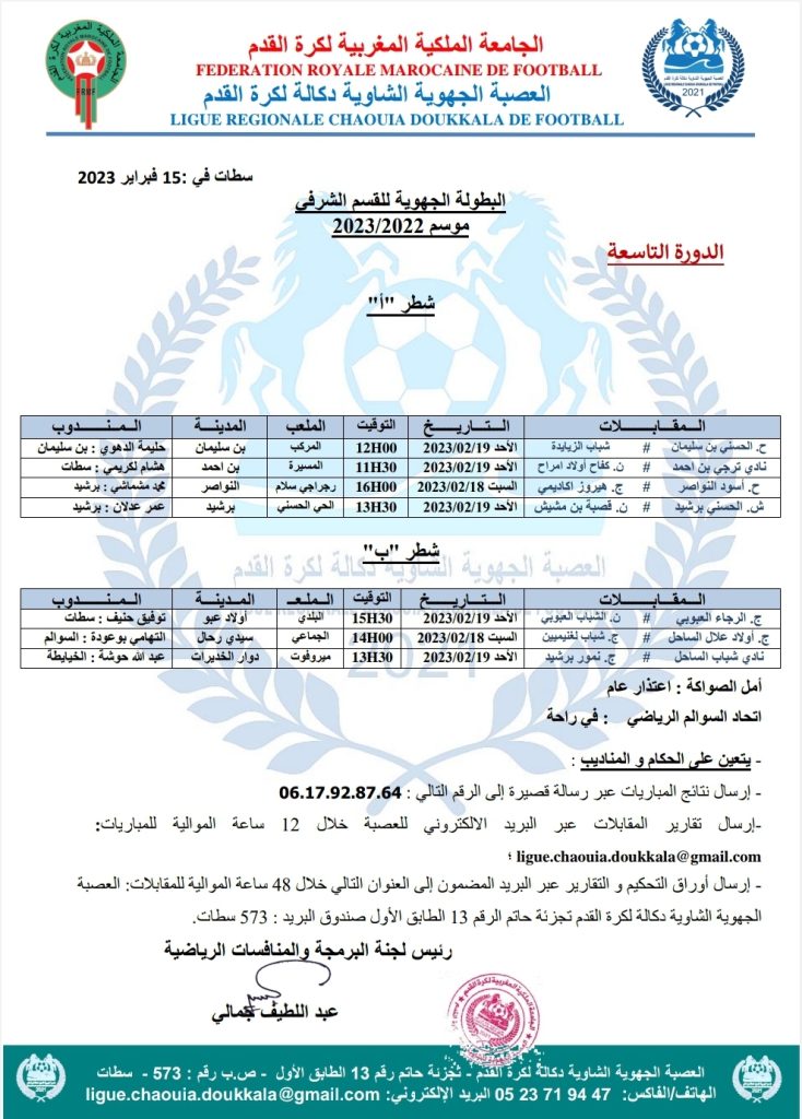 الرئيسية/مسابقات/1- بطولات العصبة الجهوية/برنامج البطولة الجهوية القسم الشرفي 1- بطولات العصبة الجهوية برنامج البطولة الجهوية القسم الشرفي فبراير 15, 2023 179 فيسبوك تويتر واتساب تيلقرام مشاركة عبر البريد طباعة فبراير 15, 2023 179 فيسبوك تويتر واتساب تيلقرام مشاركة عبر البريد طباعة اظهر المزيد شاركها فيسبوك تويتر واتساب تيلقرام مشاركة عبر البريد طباعة