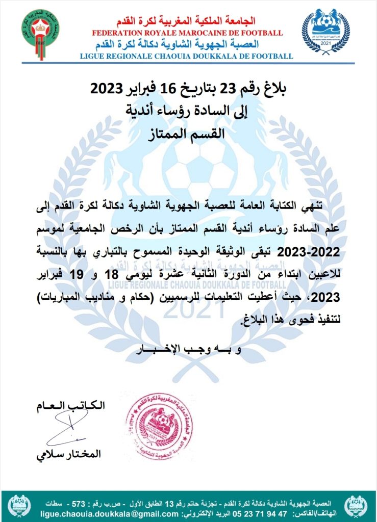 الرئيسية/بلاغات و دوريات و محاضر/بلاغات العصبة/بلاغ رقم 23 بتاريخ 16 فبراير 2023 بلاغات العصبة بلاغ رقم 23 بتاريخ 16 فبراير 2023 فبراير 16, 2023 228 فيسبوك تويتر واتساب تيلقرام مشاركة عبر البريد طباعة فبراير 16, 2023 228 فيسبوك تويتر واتساب تيلقرام مشاركة عبر البريد طباعة اظهر المزيد شاركها فيسبوك تويتر واتساب تيلقرام مشاركة عبر البريد طباعة