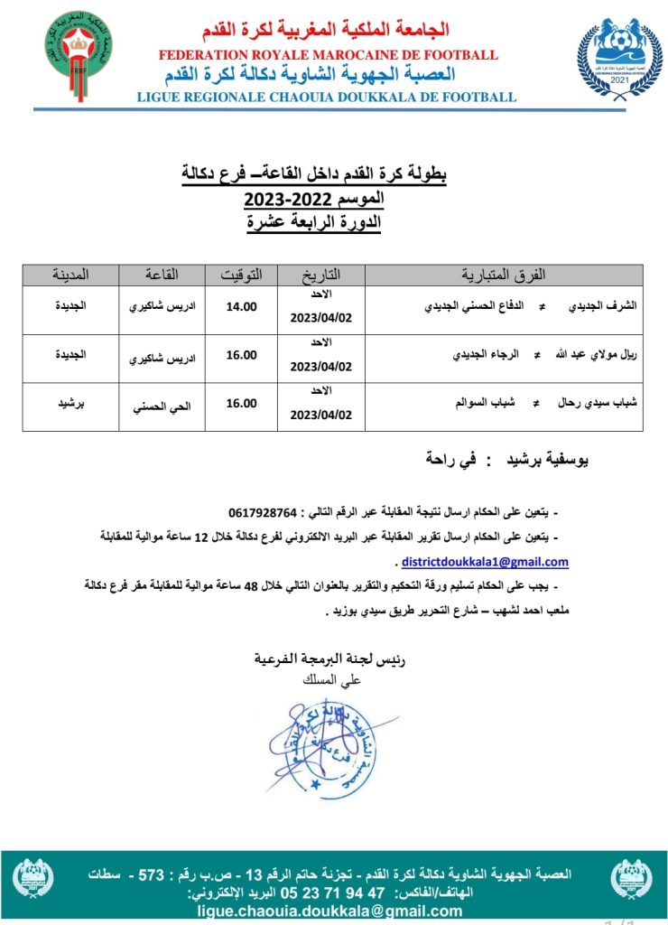 الرئيسية/رياضات متنوعة/1- كرة القدم داخل القاعة/برنامج الدورة الرابعة عشرة من البطولة الجهوية لكرة القدم داخل القاعة – فرع دكالة 1- كرة القدم داخل القاعة برنامج الدورة الرابعة عشرة من البطولة الجهوية لكرة القدم داخل القاعة – فرع دكالة مارس 29, 2023 169 فيسبوك تويتر واتساب تيلقرام مشاركة عبر البريد طباعة مارس 29, 2023 169 فيسبوك تويتر واتساب تيلقرام مشاركة عبر البريد طباعة اظهر المزيد شاركها فيسبوك تويتر واتساب تيلقرام مشاركة عبر البريد طباعة