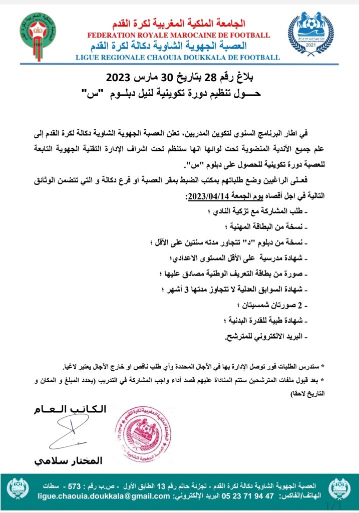 الرئيسية/بلاغات و دوريات و محاضر/بلاغات العصبة/بلاغ رقم 28 بتاريخ 30 مارس 2023 حول تنظيم دورة تكوينية لنيل دبلوم “C” بلاغات العصبة بلاغ رقم 28 بتاريخ 30 مارس 2023 حول تنظيم دورة تكوينية لنيل دبلوم “C” مارس 30, 2023 187 فيسبوك تويتر واتساب تيلقرام مشاركة عبر البريد طباعة مارس 30, 2023 187 فيسبوك تويتر واتساب تيلقرام مشاركة عبر البريد طباعة اظهر المزيد شاركها فيسبوك تويتر واتساب تيلقرام مشاركة عبر البريد طباعة