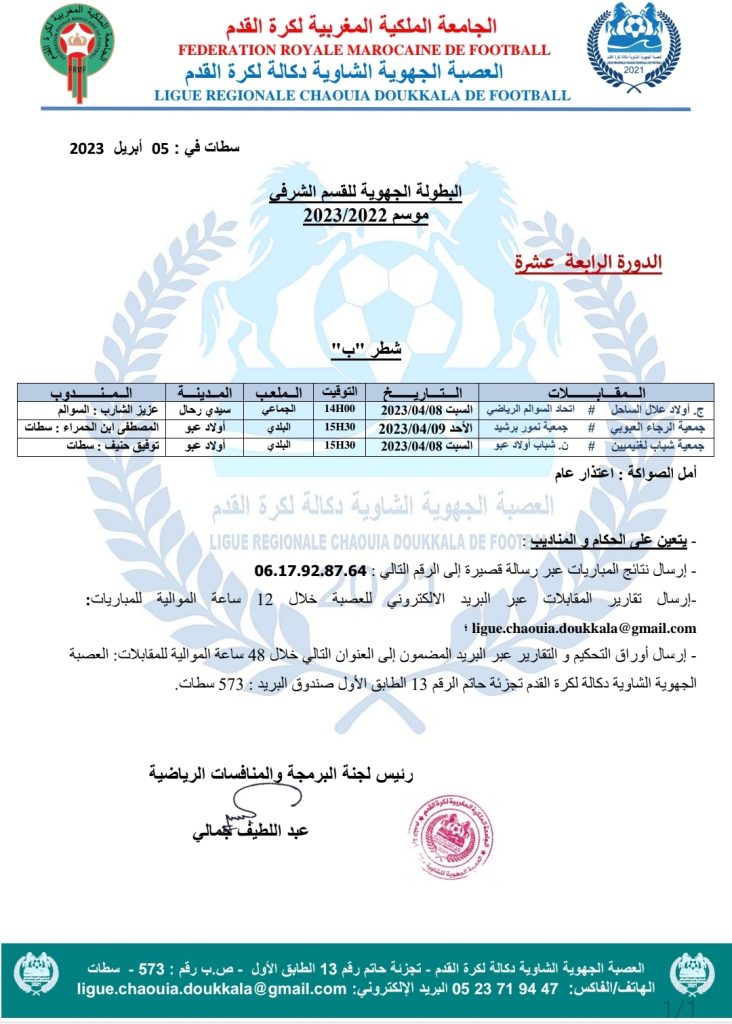 الرئيسية/مسابقات/1- بطولات العصبة الجهوية/برنامج البطولة الجهوية القسم الشرفي 1- بطولات العصبة الجهوية برنامج البطولة الجهوية القسم الشرفي أبريل 5, 2023 222 فيسبوك تويتر واتساب تيلقرام مشاركة عبر البريد طباعة أبريل 5, 2023 222 فيسبوك تويتر واتساب تيلقرام مشاركة عبر البريد طباعة اظهر المزيد شاركها فيسبوك تويتر واتساب تيلقرام مشاركة عبر البريد طباعة