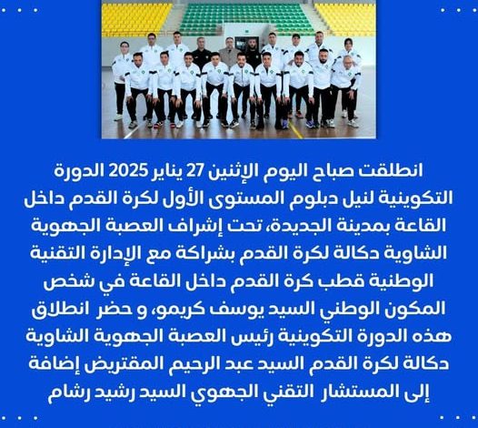انطلاق فعاليات الدورة التكوينية لنيل المستوى الأول لكرة القدم داخل القاعة بمدينة الجديدة