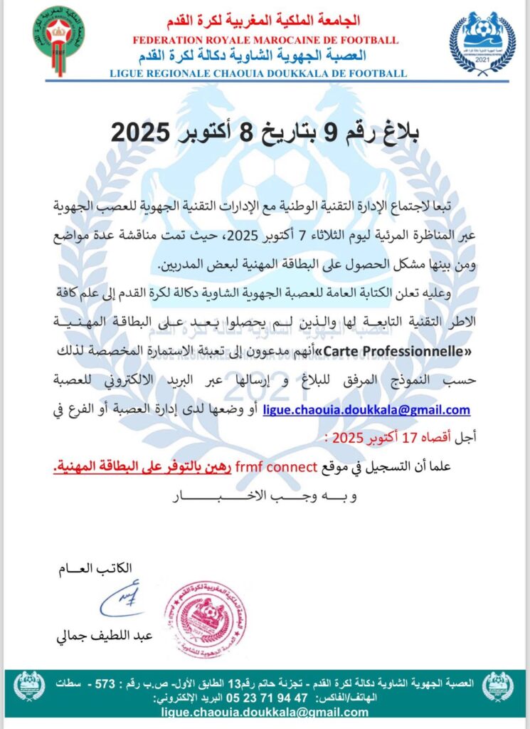 الرئيسية/بلاغات و دوريات و محاضر/بلاغات العصبة/بلاغ رقم 9 بتاريخ 08 أكتوبر 2025 بلاغات العصبة بلاغ رقم 9 بتاريخ 08 أكتوبر 2025 أكتوبر 9, 2025 129 فيسبوك تويتر واتساب تيلقرام مشاركة عبر البريد طباعة أكتوبر 9, 2025 129 فيسبوك تويتر واتساب تيلقرام مشاركة عبر البريد طباعة اظهر المزيد شاركها فيسبوك تويتر واتساب تيلقرام مشاركة عبر البريد طباعة
