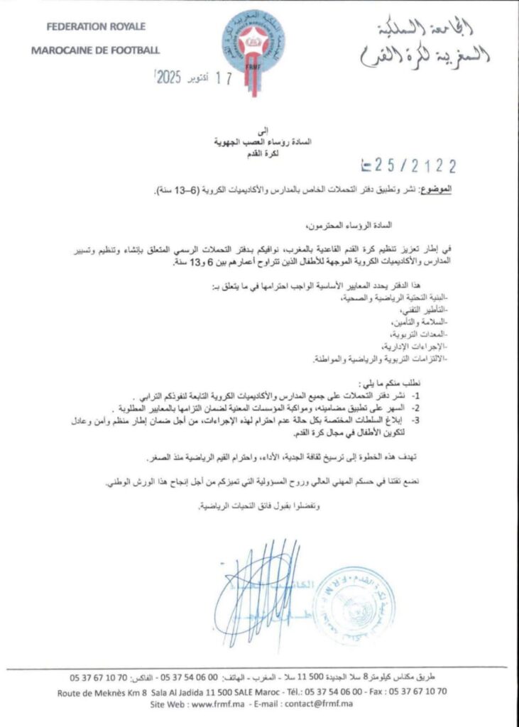 الرئيسية/أخبار مختلفة/دفتر التحملات الخاص بالمدارس و الأكاديميات الكروية للأطفال أقل من 6 إلى 13 سنة أخبار مختلفة دفتر التحملات الخاص بالمدارس و الأكاديميات الكروية للأطفال أقل من 6 إلى 13 سنة أكتوبر 17, 2025 103 أكتوبر 17, 2025 103 اظهر المزيد
