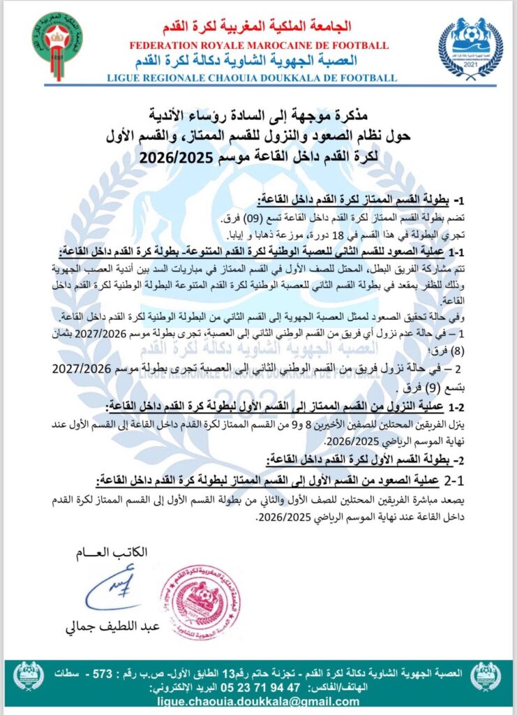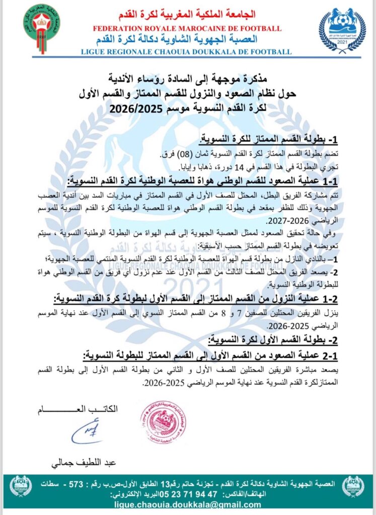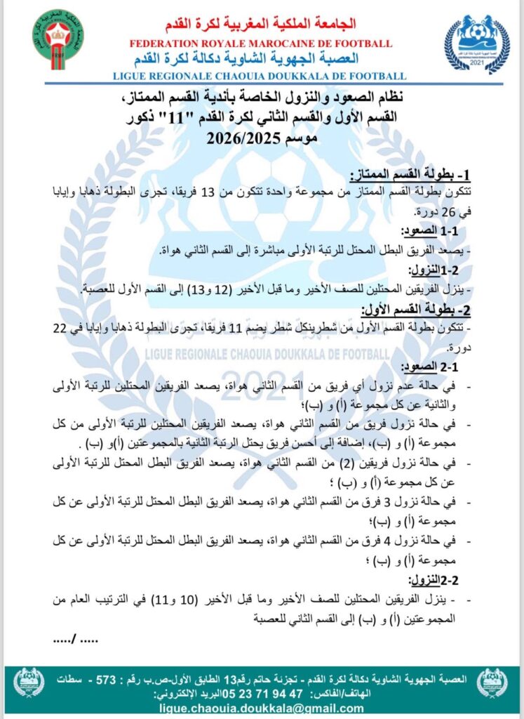 الرئيسية/بلاغات و دوريات و محاضر/دوريات العصبة/مذكرة حول نظام الصعود و النزول دوريات العصبة مذكرة حول نظام الصعود و النزول أكتوبر 25, 2025 137 فيسبوك تويتر واتساب تيلقرام مشاركة عبر البريد طباعة أكتوبر 25, 2025 137 فيسبوك تويتر واتساب تيلقرام مشاركة عبر البريد طباعة اظهر المزيد شاركها فيسبوك تويتر واتساب تيلقرام مشاركة عبر البريد طباعة