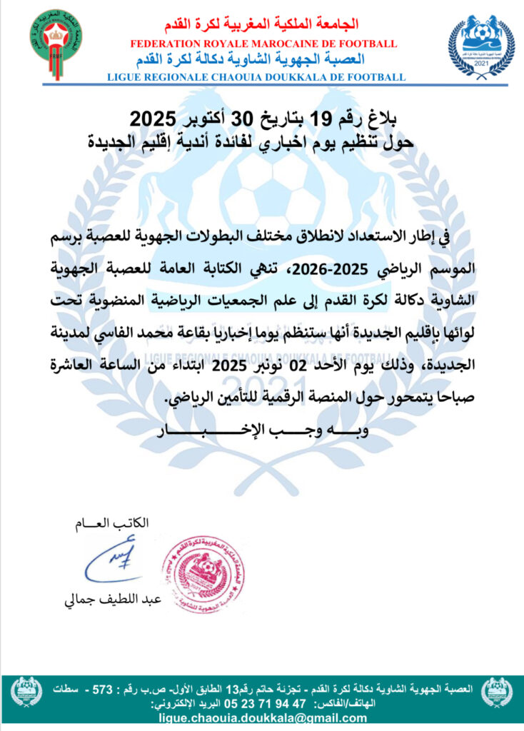 الرئيسية/بلاغات و دوريات و محاضر/بلاغات العصبة/بلاغ رقم 19 بتاريخ 30 أكتوبر 2025 بلاغات العصبة بلاغ رقم 19 بتاريخ 30 أكتوبر 2025 أكتوبر 30, 2025 154 فيسبوك تويتر واتساب تيلقرام مشاركة عبر البريد طباعة أكتوبر 30, 2025 154 فيسبوك تويتر واتساب تيلقرام مشاركة عبر البريد طباعة اظهر المزيد شاركها فيسبوك تويتر واتساب تيلقرام مشاركة عبر البريد طباعة