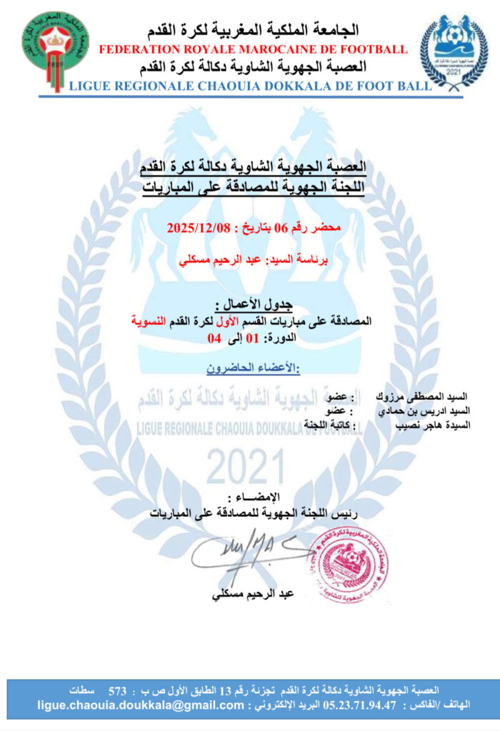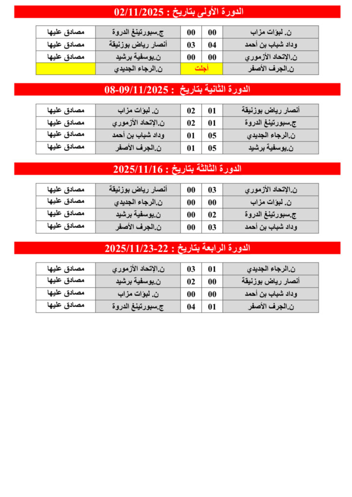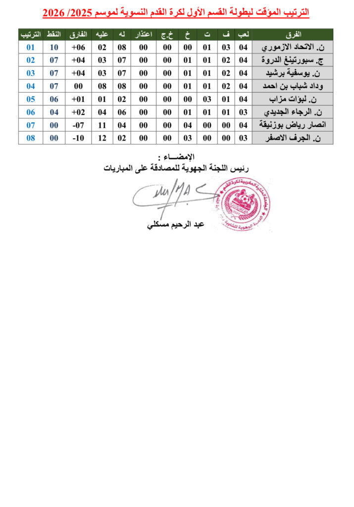 الترتيب المؤقت لبطولة القسم الأول لكرة القدم النسوية إلى حدود الدورة الرابعة (مع المصادقة)